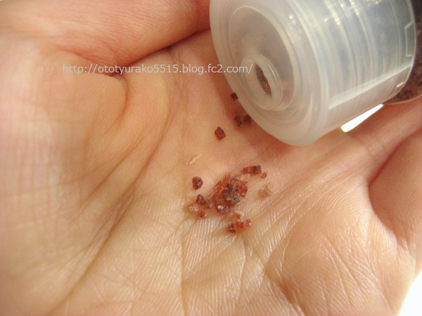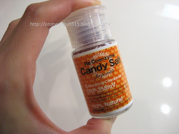 ボトルタイプなんですが、ミニサイズだったから携帯しやすいです。暑さでばてるかもって頃合いをみて摂取しました。茶色の結晶みたいなかんじ。これをなめるだけ。ソルトなだけにしょっぱい。しかも、なんだかゆで卵のような、温泉のイオウのような、そんな味がして、個人的には申し訳ないけど美味しくはない・・・・。うーーーん・・・・。積極的になめたくはないかな。でも、熱中症になるよりはいいかもね。