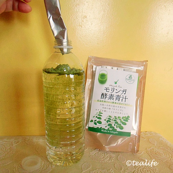 飲み方は、モリンガ酵素青汁2g (小さじ1杯)を500mlの水(できれば浄水)で溶けばOK