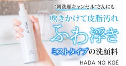 HADA NO KOÉのトーニングクリアミストは吹きかけてなじませて流すだけのミスト洗顔。