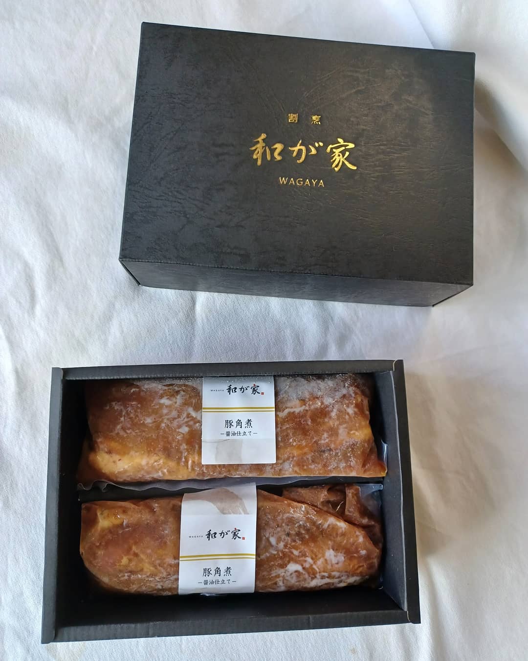 和食料理店「割烹 我が家」様の豚の角煮ー化粧箱入りー当選しました。 和食店と精肉店が協力して作り...
