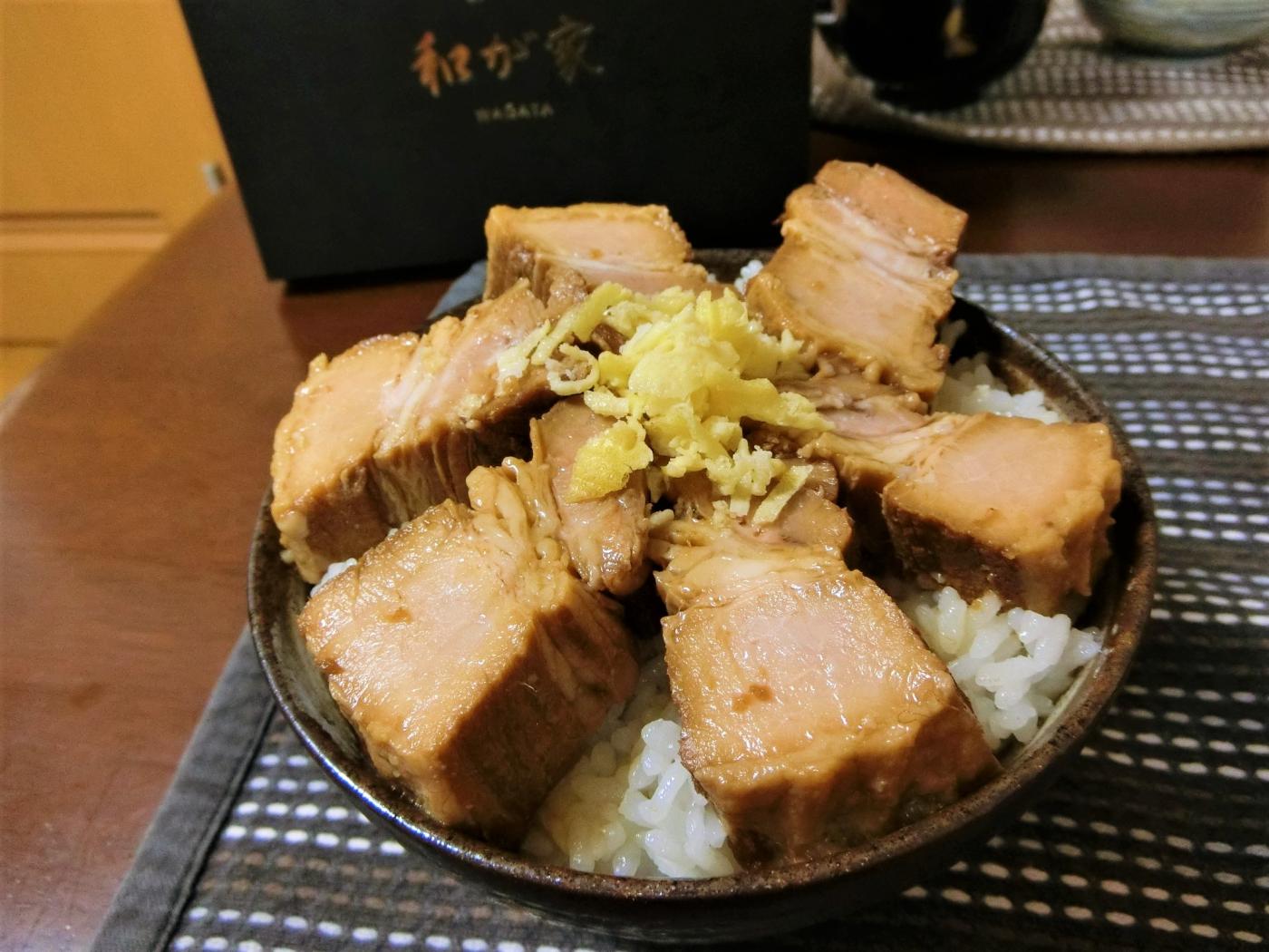 醤油で煮込まれた豚の甘みと旨みが口いっぱいに広がります!