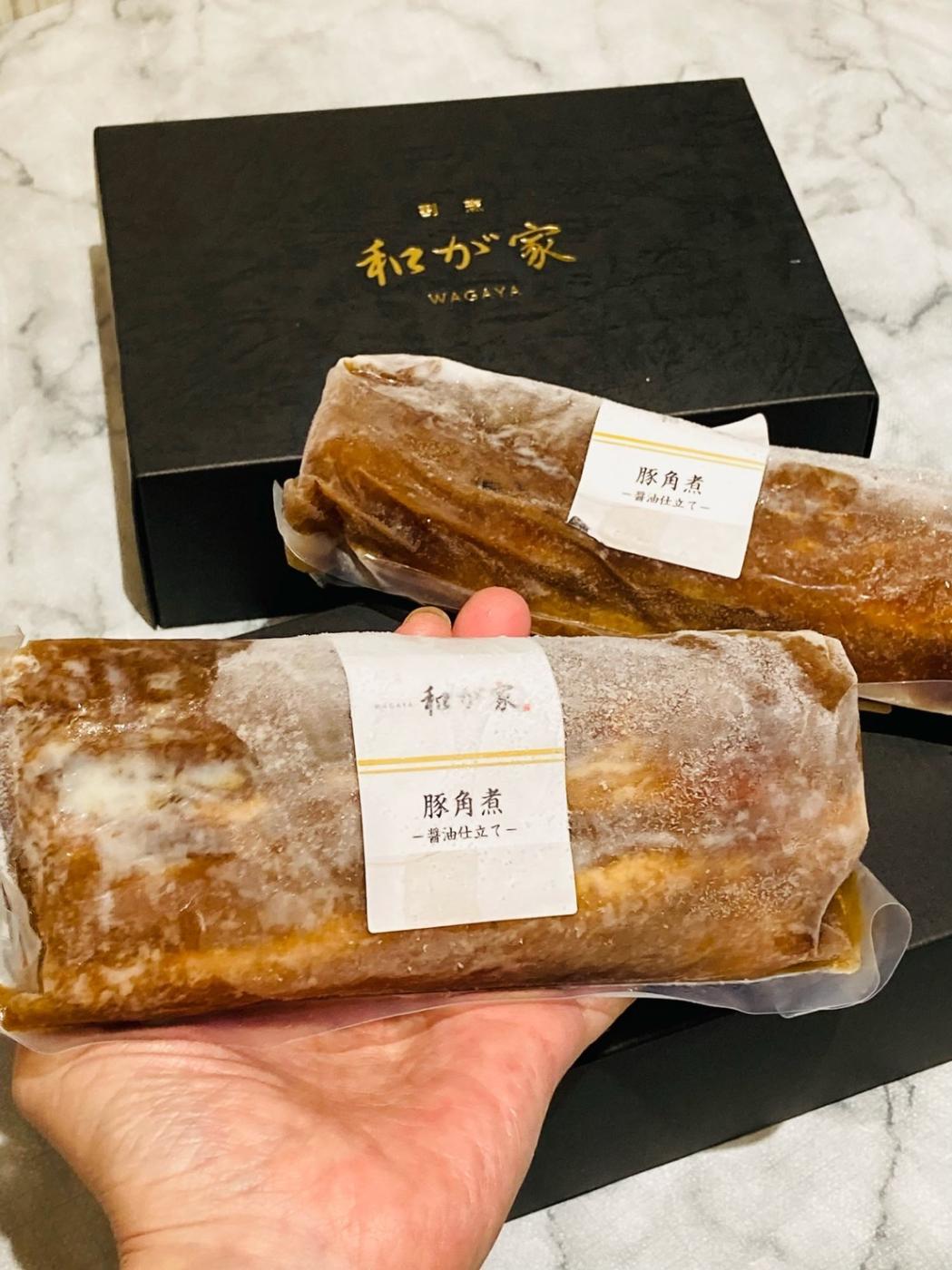 我が家さまの豚角煮-化粧箱入-の紹介です 冷凍の真空パックで届きます、高級感のある化粧箱に入って...
