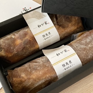 割烹和が家様より豚角煮をいただきました。 高級感溢れる化粧箱の中にどっしりとした豚の角煮が二つ。...