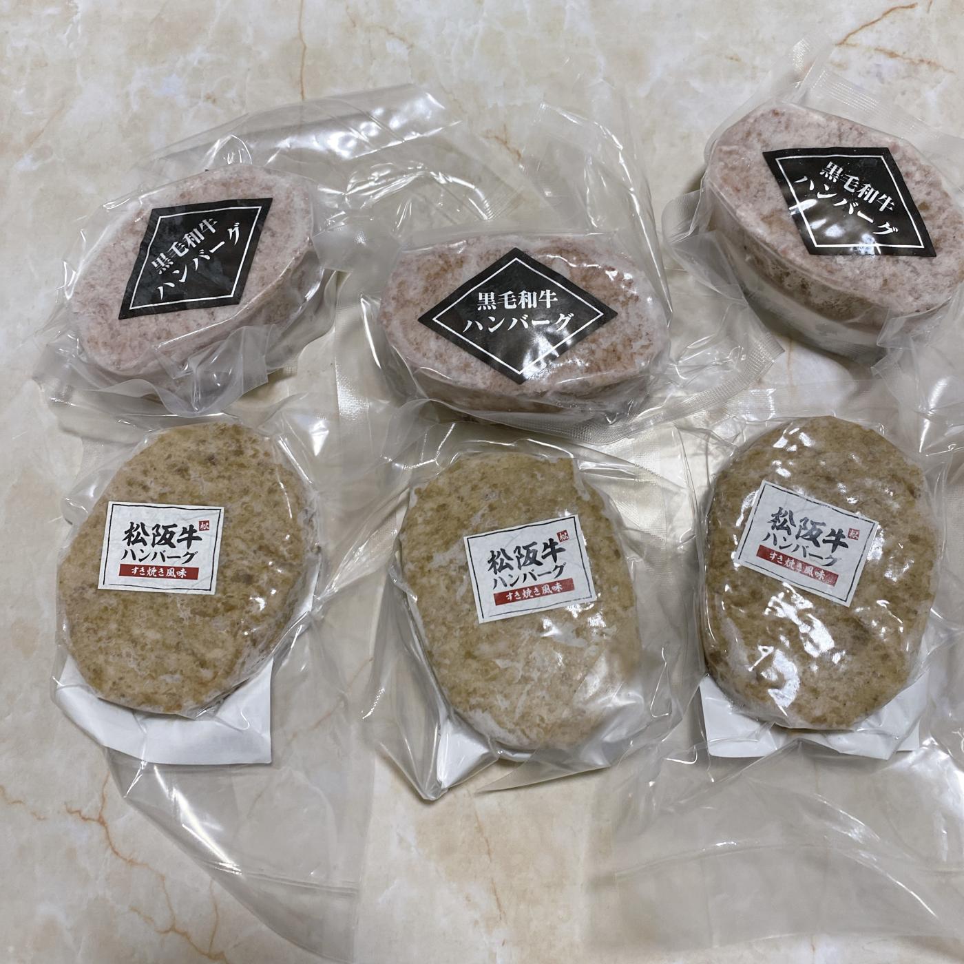 松阪牛・黒毛和牛の食べ比べハンバーグ6個セット(各3個)