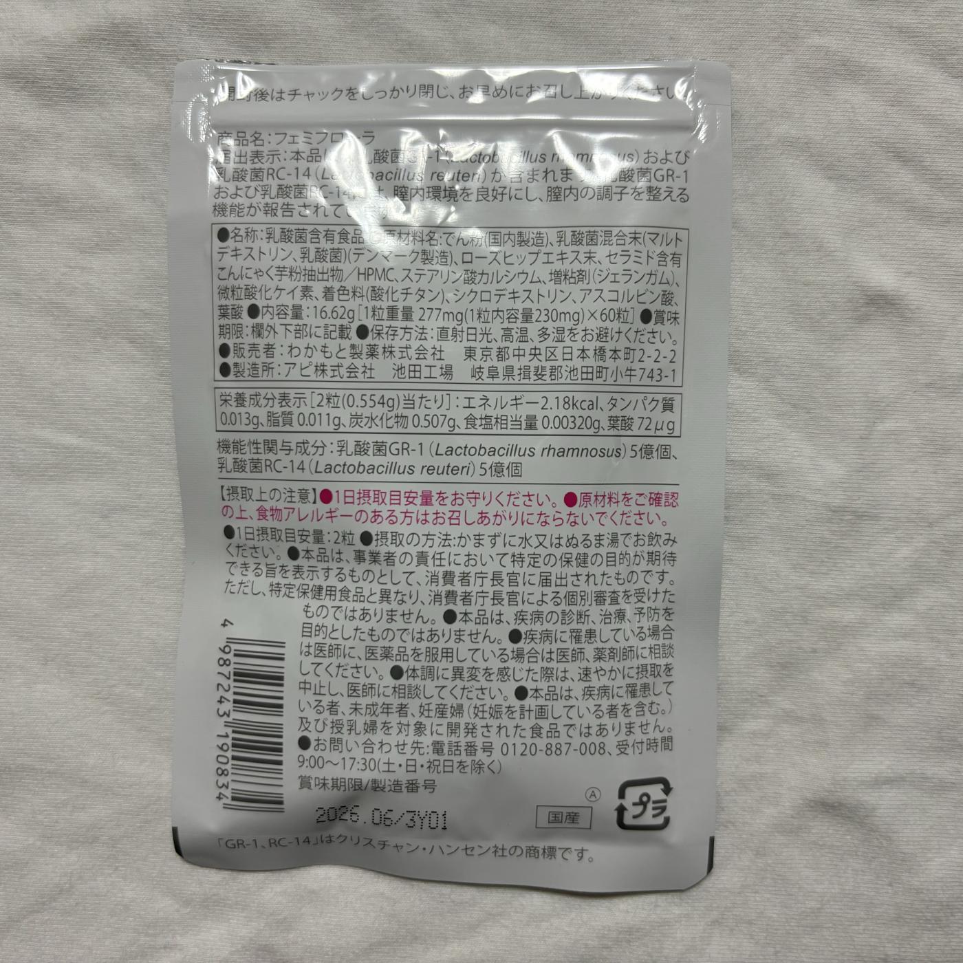 コエタスのモニターキャンペーンでもらった「フェミフローラ」についてのレビューです。 1袋に60粒、1...