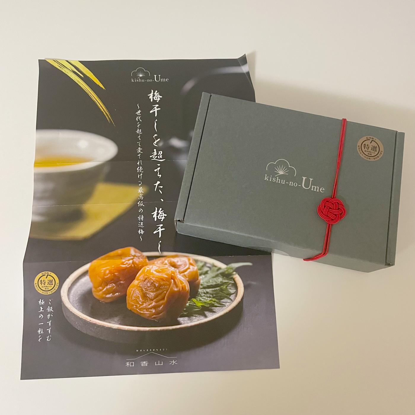 和香山水さんのkishu-no-Umeを お試しさせていただきました! オシャレで高級感のある箱を開けると...