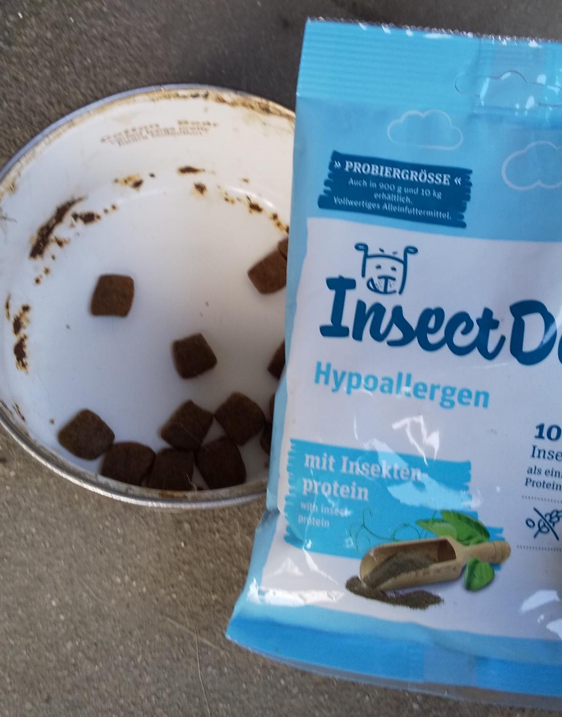 名前の通りインセクト、虫が入っているらしいのですが、見た目や形状からは全くわかりません。外袋にもそういったイラストは描かれていないので飼い主の方は全く抵抗なく与えてあげることができました。うちの子は食べ物の好き嫌いが割りと激しいのが悩みでした。フードのみならずおやつでもいつもと違うものに変えただけで食べなかったりするので今回の商品も食べられるか少し心配でした。しかしこのフードはそういったものとは全く違います。封を切った瞬間から鼻を動かして近づいてきてくれるんです。あげてみると、あっという間にぺろりと食べてしまいました。ぱっと見た感じだと割りと大粒の四角いドライフードというイメージです。でもその割には厚みがあまりないので小型犬でも十分食べられると思います。トイレが時々ユルユルしがちだったのですが、このフードを食べてからはそういった症状が見られませんでした。ひどいわけでもないし、時々にしか見られない症状だったので特に対処するわけでもなく過ごしていましたし、諦めていたというのが正直なところです。しかしこのフードのおかげで腸内環境が整ったようでとてもうれしいです。