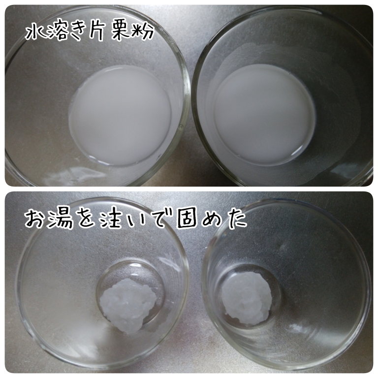 本当は水っぽい状態で片栗粉が固まるのですが、私の場合はゴムのような感じで片栗粉が固まりました。