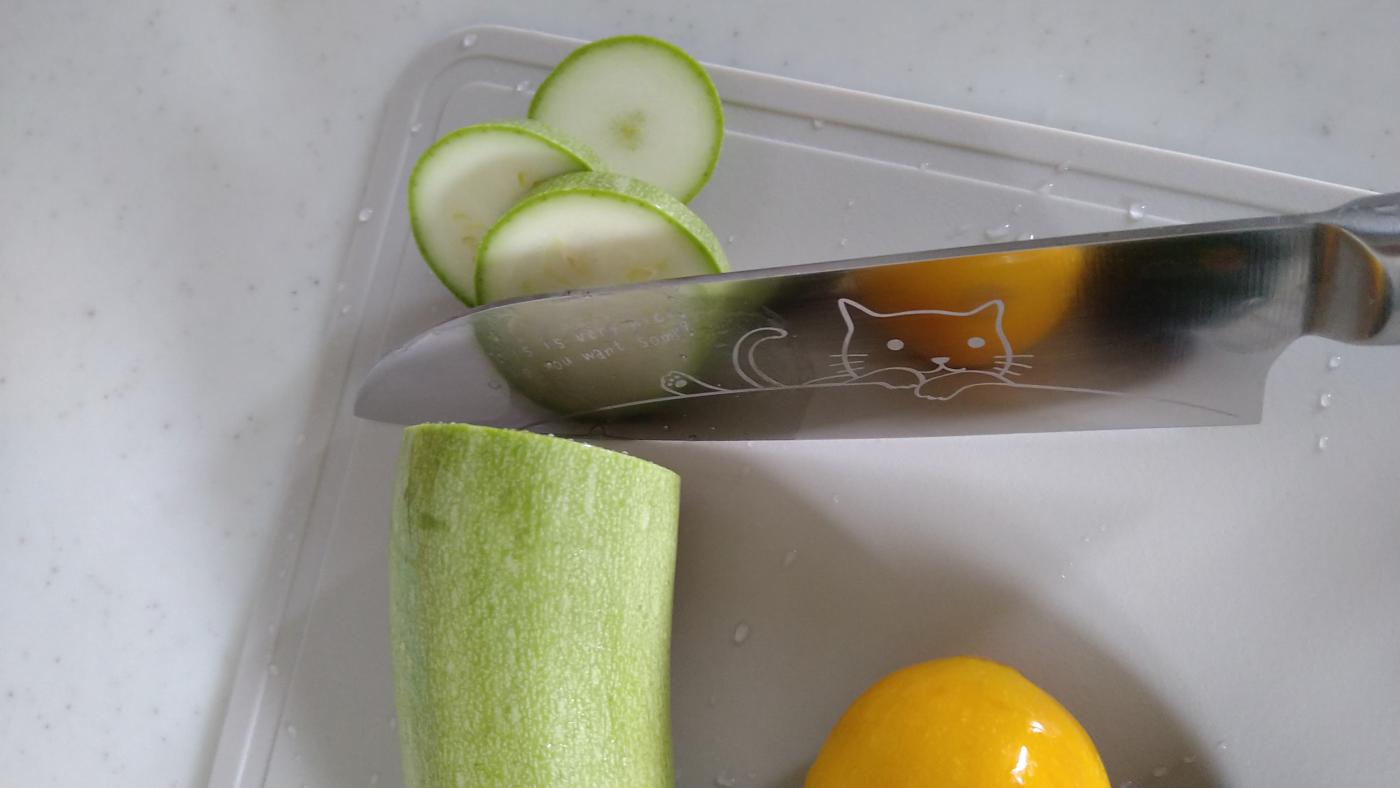 トマトやズッキーニなど色の強い野菜を切ると、色がつくことがありますが、魔法のまな板だと、色もつきにくそうです✨