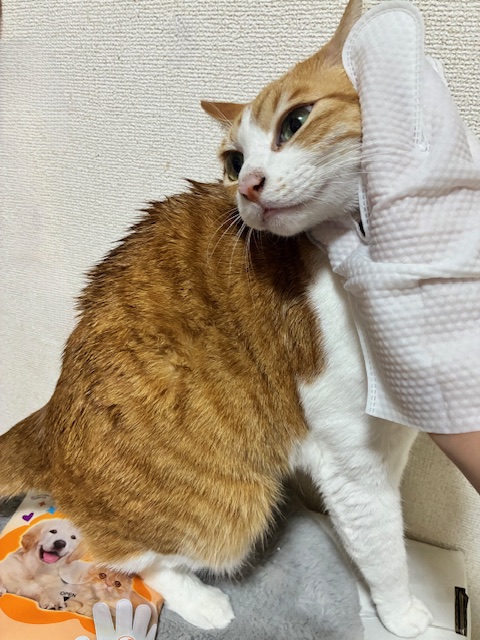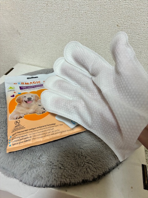 でもやっぱり嫌がるうちの子。それでもグローブ型なので何とか細かいところまで拭くことができました。
