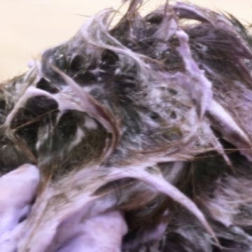 ・泡立てず、髪に塗布し、15分程度放置していただきますと、ムラサキ色が入ります。(ブリーチを数回繰り返している方に限ります。)