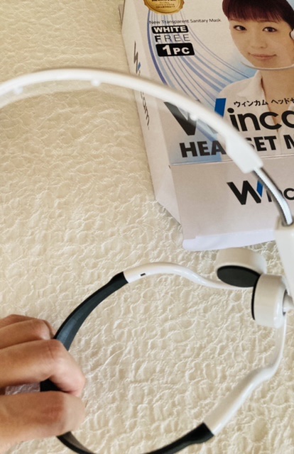 ウィンカムヘッドセットマスクを使ってみました。 透明のフィルムでオペレーターさんみたいな形状をし...