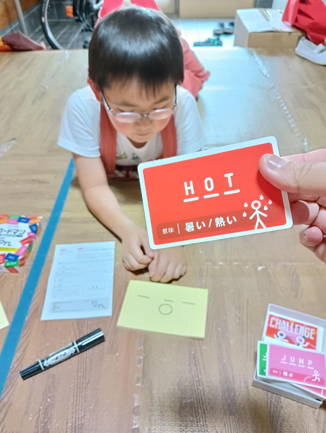 カードを一枚選び、単語のスペル数アンダーラインをひいて、ヒントを出していき、点数を競うゲーム。
