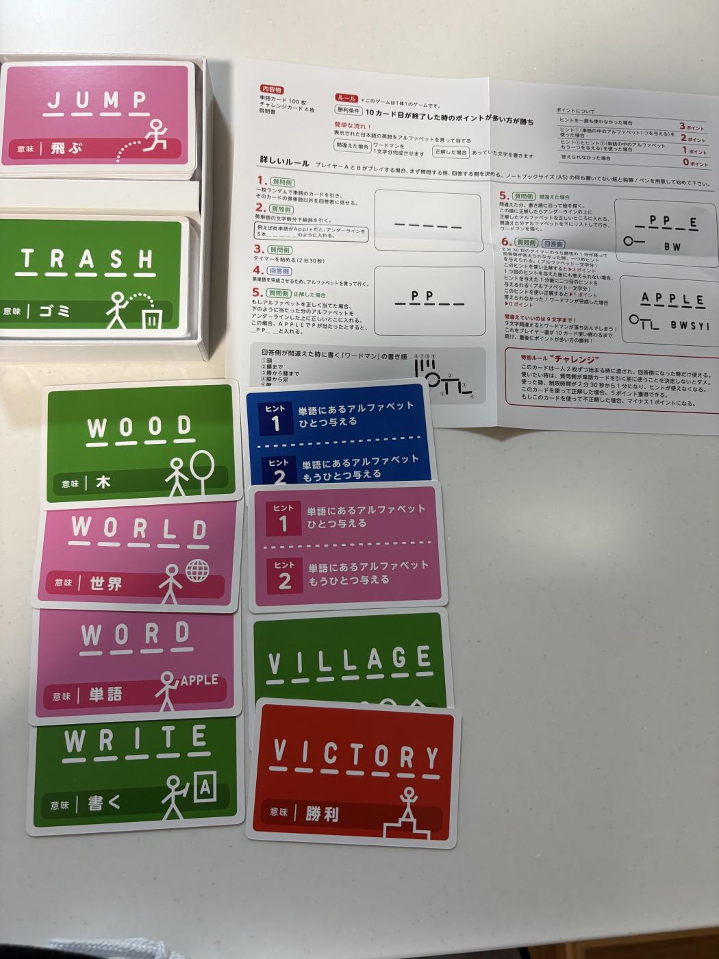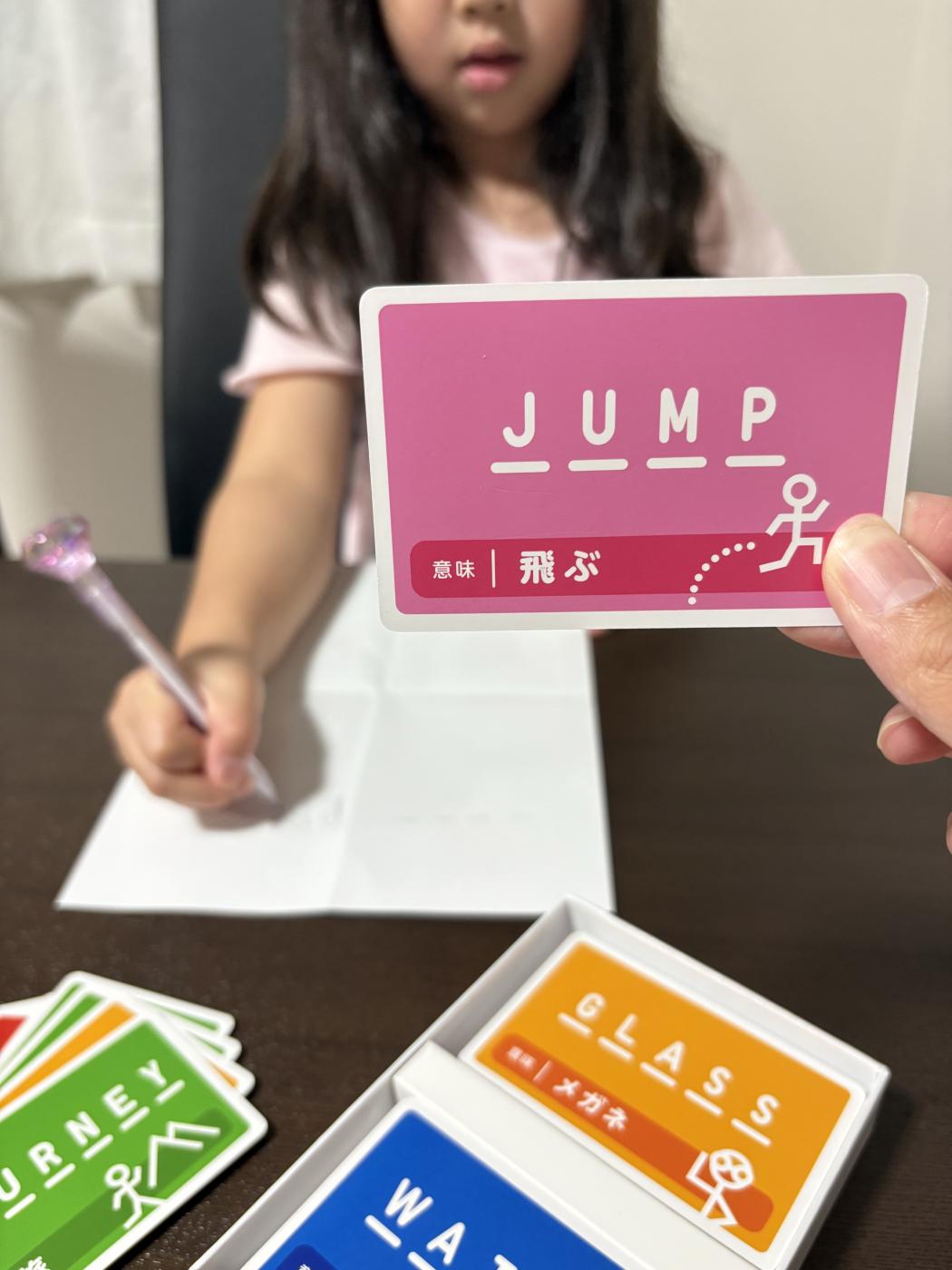 一枚ランダムで単語のカードを引き、そのカードの英単語以外を回答者に見せる