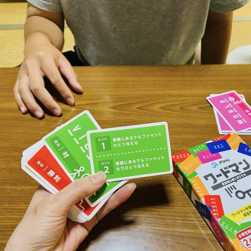 今回、日本語とイラストをヒントに英単語のアルファベットを完成させる対戦型カードゲームの「ワードマン」に出会えて学ぶことの踏みだしになればうれしいと感じでいます。楽しく自然にカードゲームを通じて英単語が頭のどこかに記憶されれば良いなと思いました。