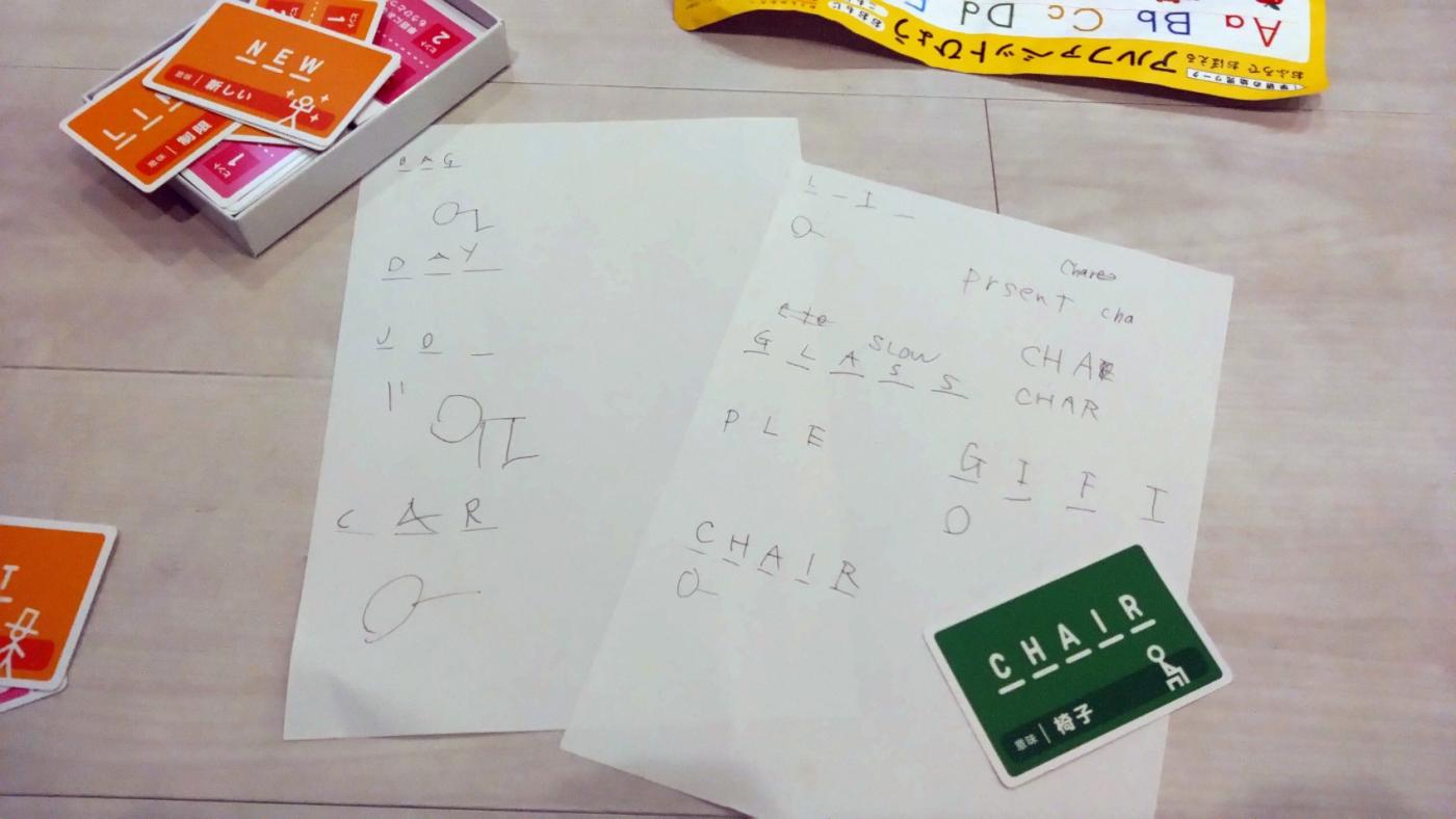 ルールをざっくり説明すると、表示された日本語をアルファベットを言って当てるというゲーム。