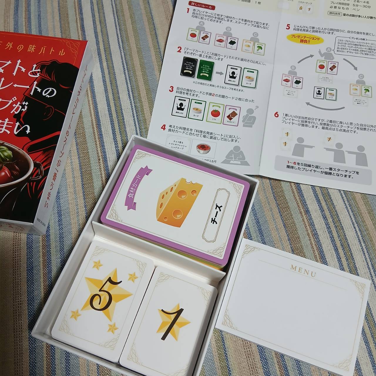 8歳の息子と一緒に遊んでみました。料理をテーマにしたカードゲームと聞いていましたが、実際に遊んでみ...