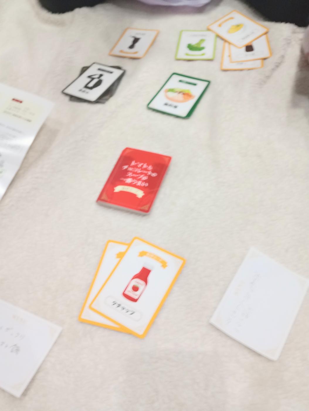 例えば、牛肉のカードを持っているのにお題はスイーツだったり、あんこのカードを持っているのにお題はお寿司だったり。