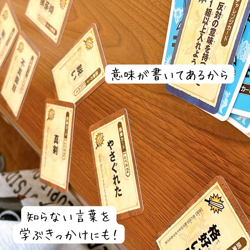 カードには興味を惹く言葉と言葉の意味まで書いてあるので