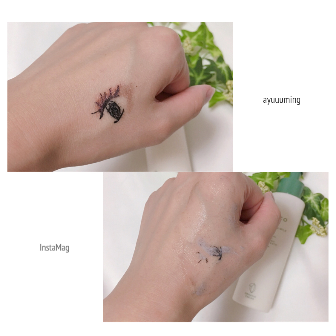 ただ、がっつりアイメイクとかしちゃうと、なかなか落ちにくいかな〜といった印象です。