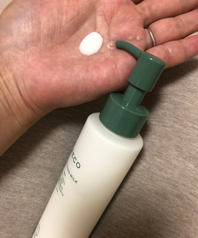 ぬるま湯で馴染ませて流していくと乳化して落ちていきます。落とした後もしっとりしていますねー!