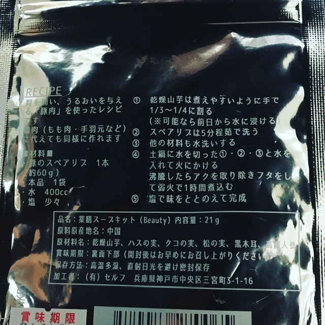 今回のスープキットは"Beauty"ですが、スープキットには他にも"Power"、"Moisture"、"Clear"などもあるみたいなので、是非試してみたいと思います!