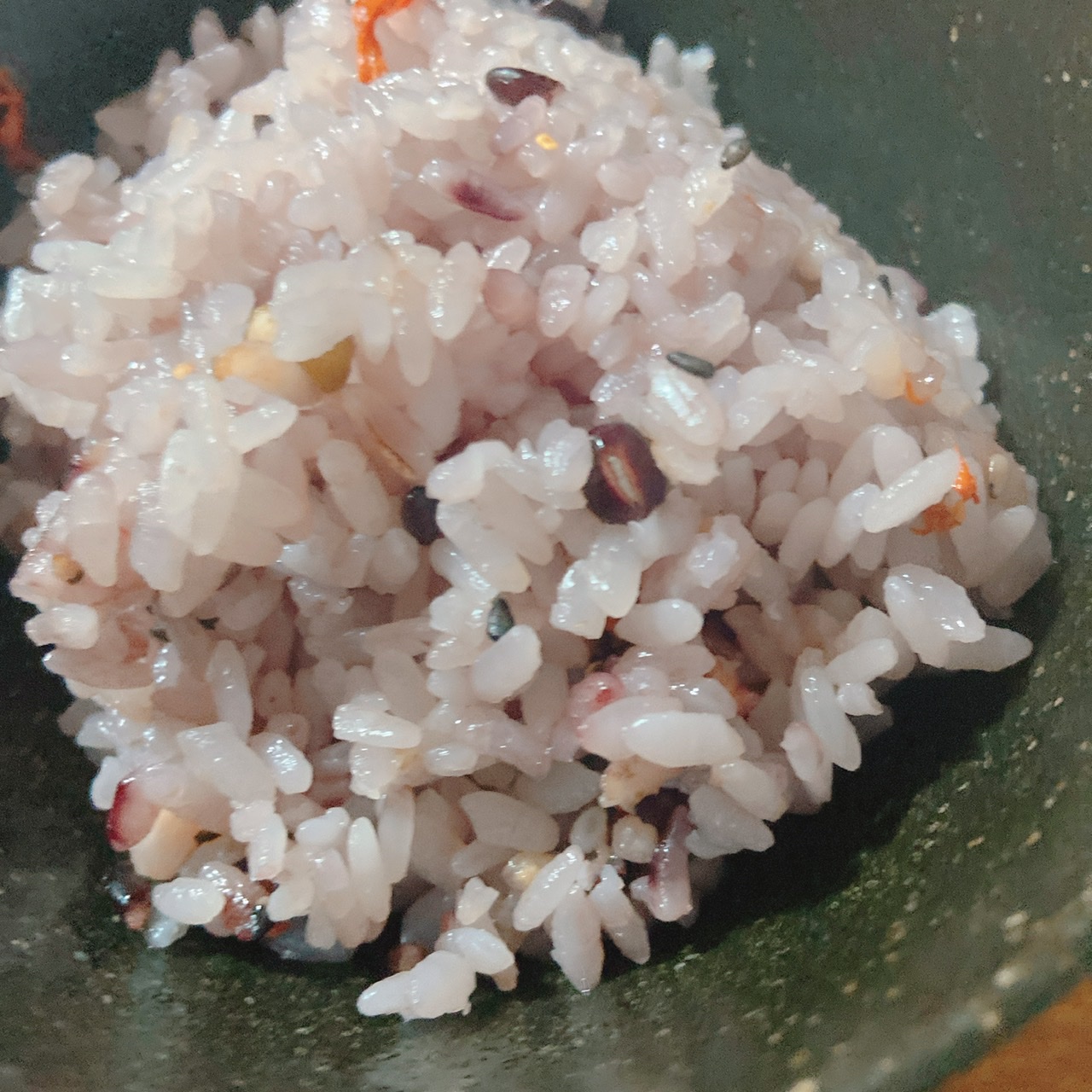 ほんのり小豆色に色づいたお米はもちもちとした食感?????