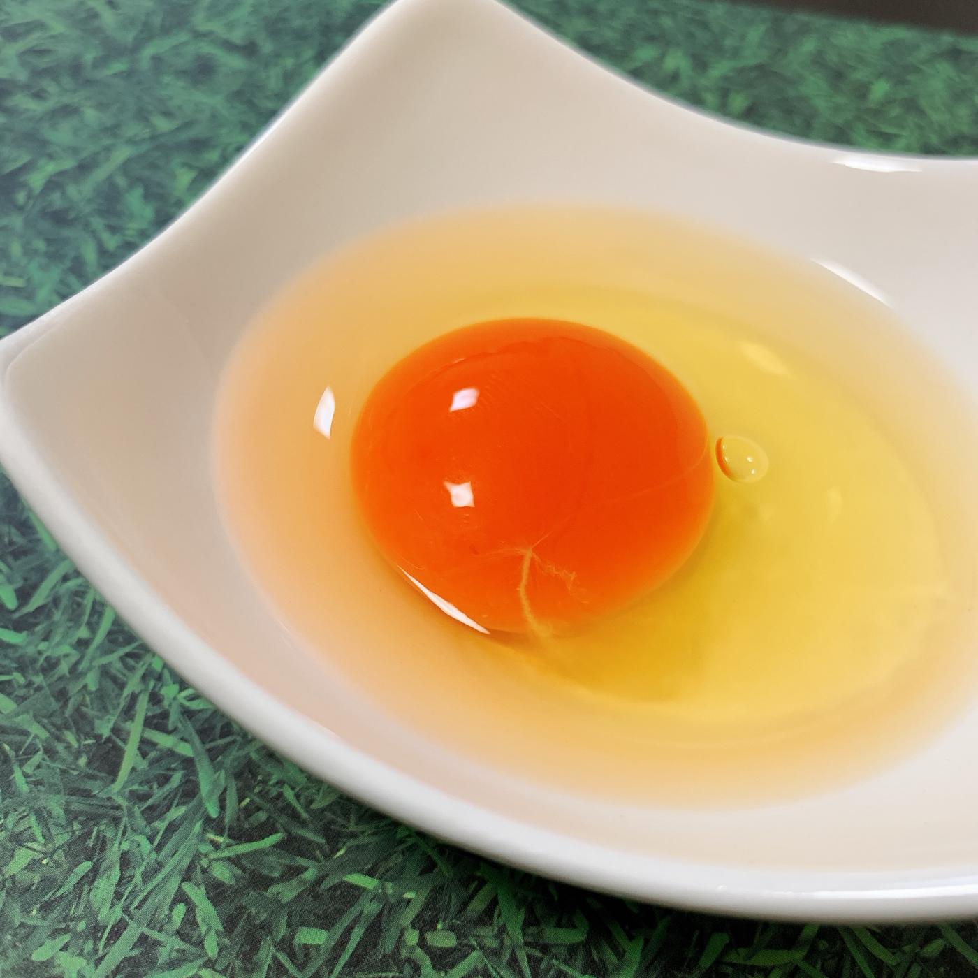 卵を割ると卵特有のニオイもなく黄身が濃ゆい。凄く味が濃厚で食べ応えあり。