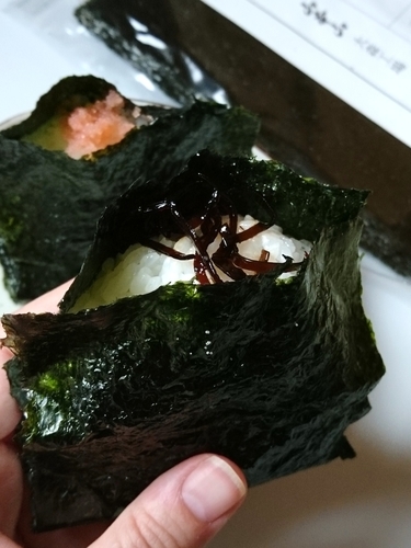 平日の自宅でのランチは圧倒的にパンが多いけど、 珍しく明太子おにぎりと昆布おにぎりを作りました。 ...
