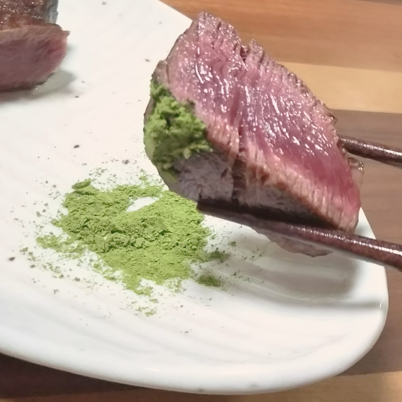 ということで一品だけ、抹茶塩にして和牛ヒレステーキと合わせることにしました。