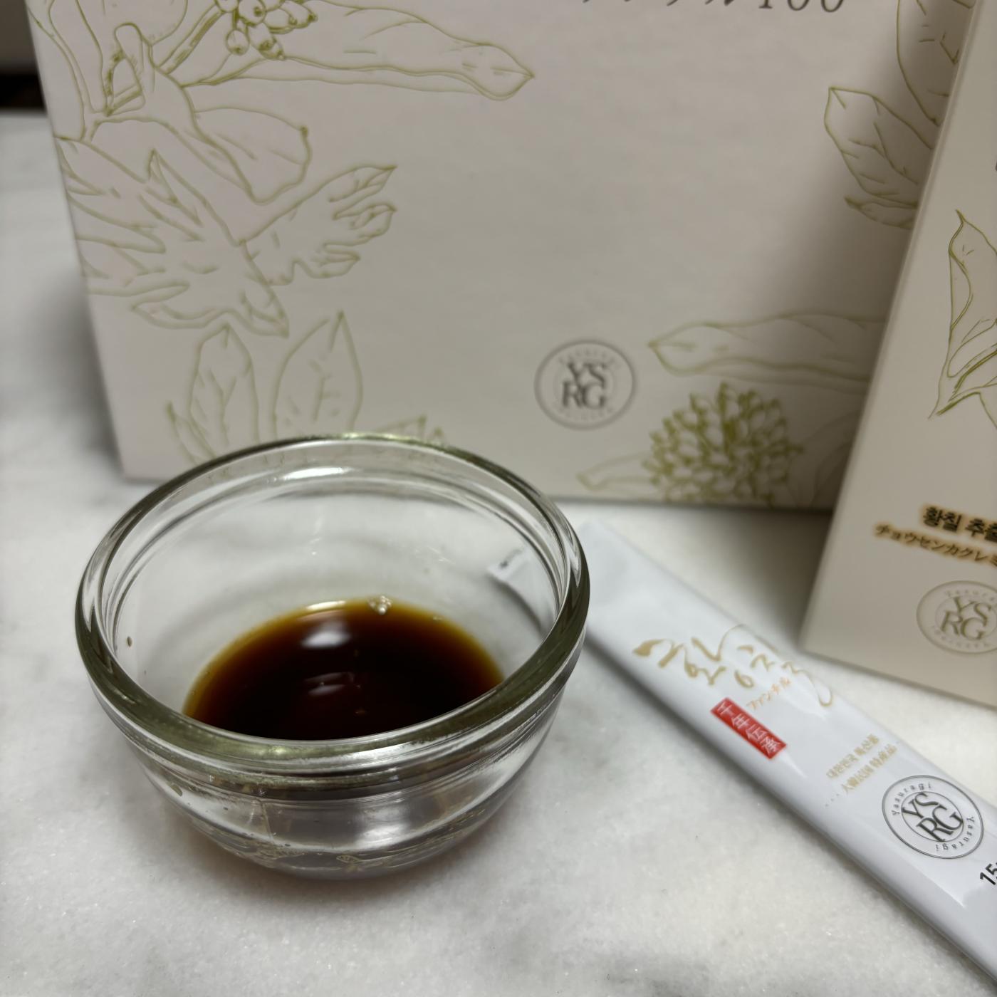 樹齢10年以上のチョウセンカクレミノで最も栄養が豊富な時期に収穫され、 丁寧に12時間抽出された純粋な大韓民国全羅南道産のみを使用しているから安心で安全✨