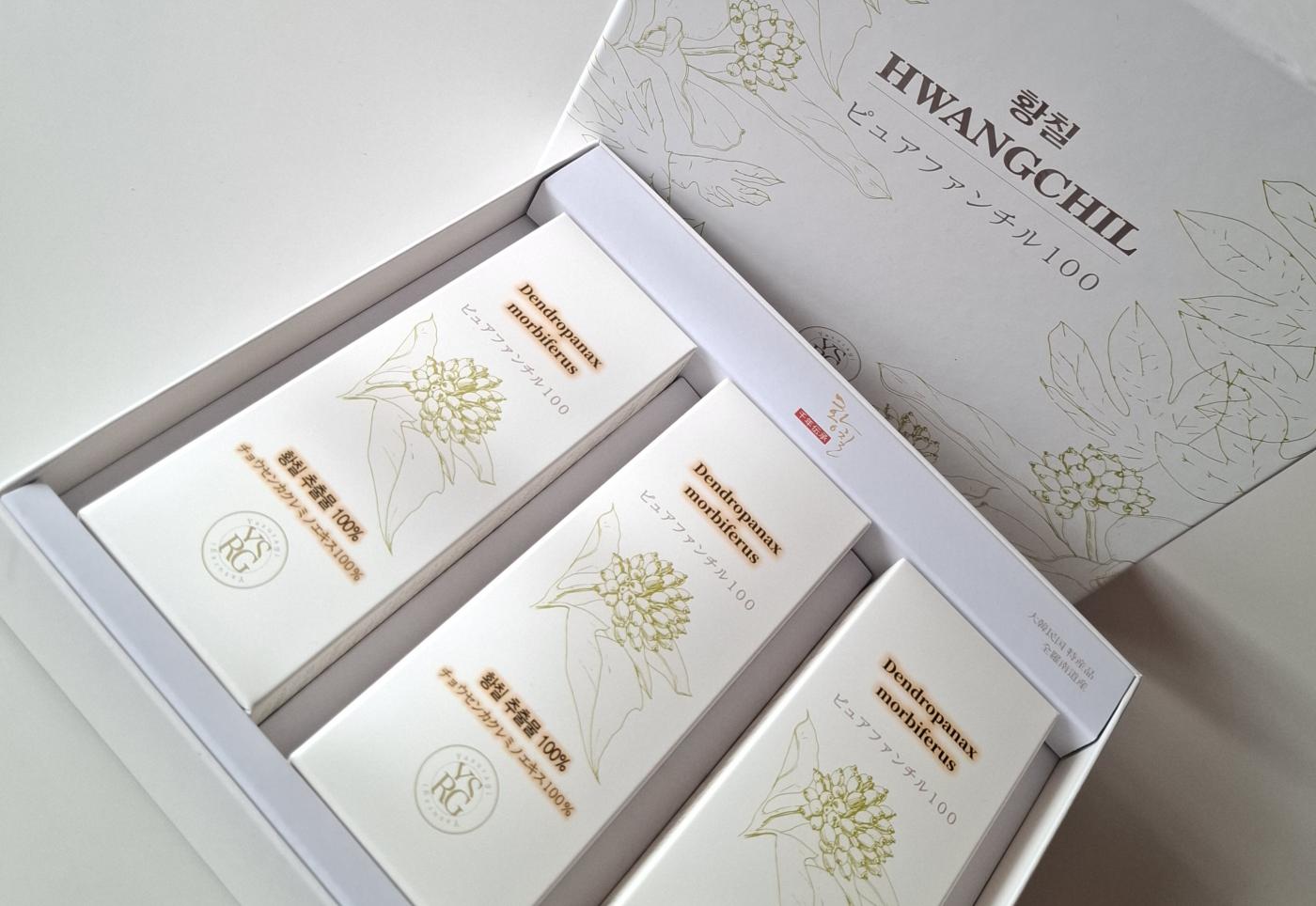 ポリフェノールやサポニン、クロロゲン酸・ルチンを多く含んだ健康食品で、大韓民国固有の樹種【ファンチル(チョウセンカクレミノ)】を濃厚に濃縮。