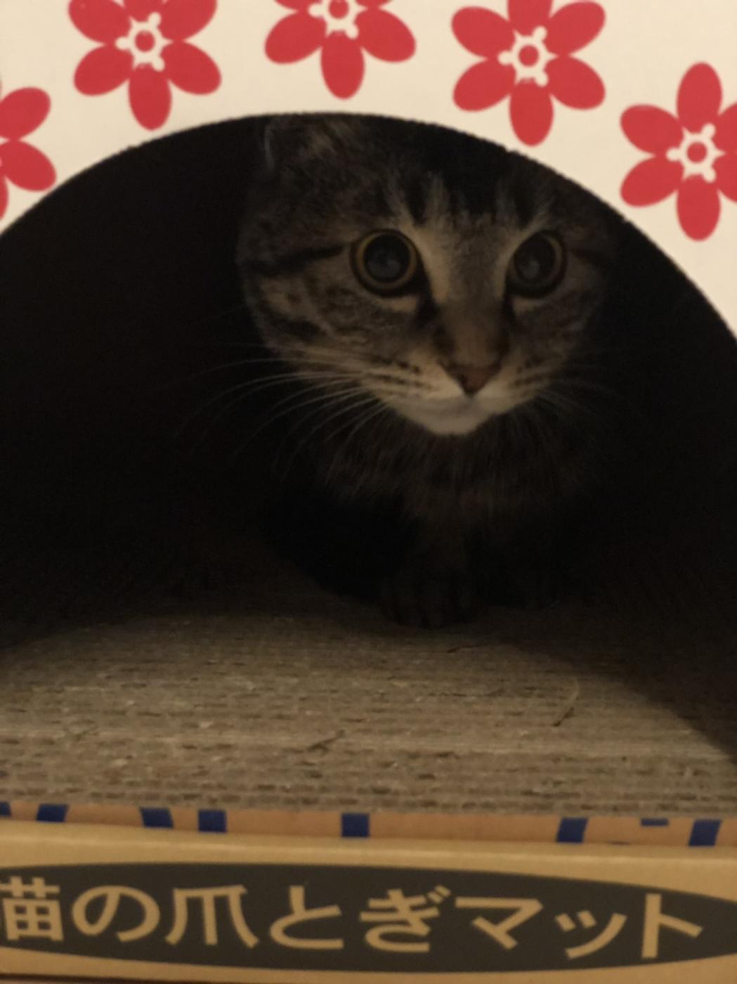 結構、大きいです。が、これは開けてすぐに愛猫が近くへ行き、スッ…と入っていきました。で、ほどなくして