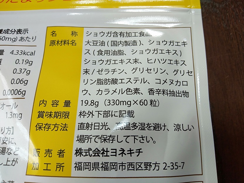 なんと1日2粒に生のショウガ2個分以上のショウガオールが配合されています。