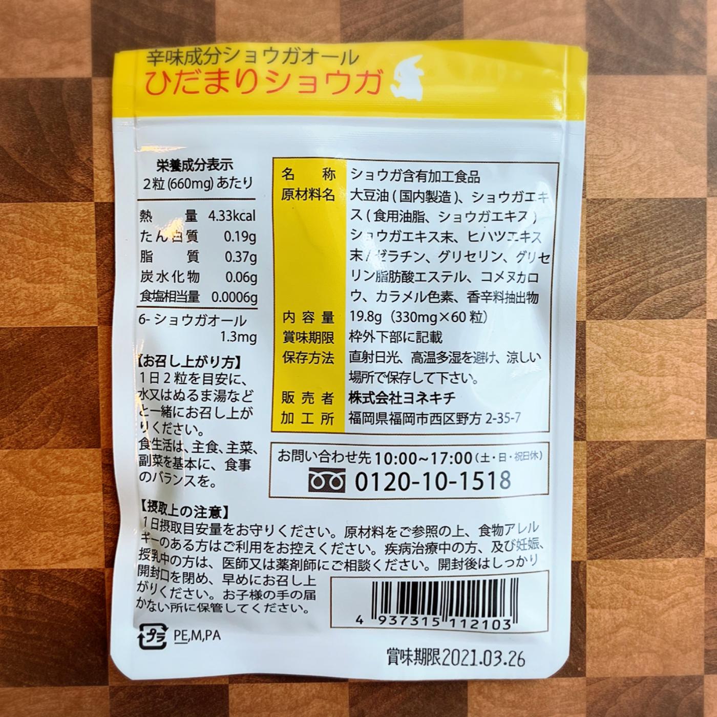 ヨネキチ 温活サプリ ひだまりショウガ