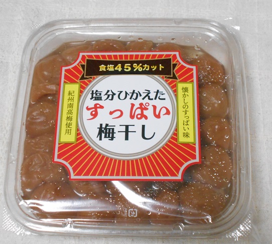 昔ながらのすっぱい梅干しだけど、独自製法により食塩使用料は従来品から45%カットに成功したんだそうですよ。