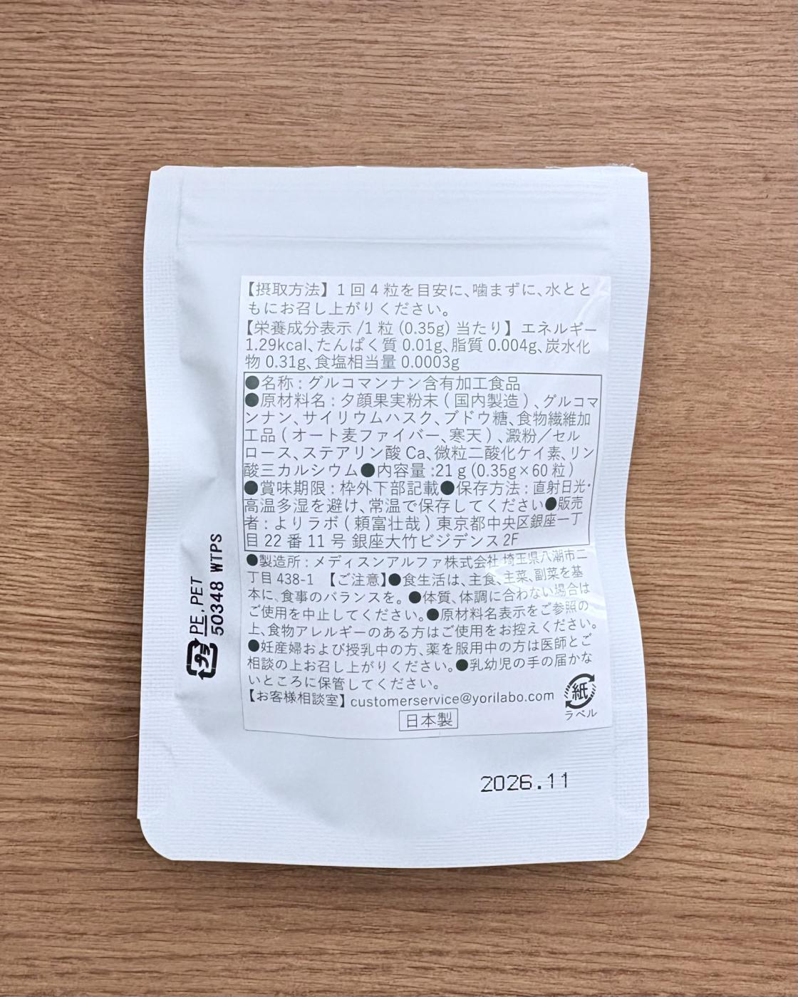 ✔️水分で膨らむ満足感:夕顔果実粉末やグルコマンナンなど、水分に反応して膨張する成分が配合されています💧