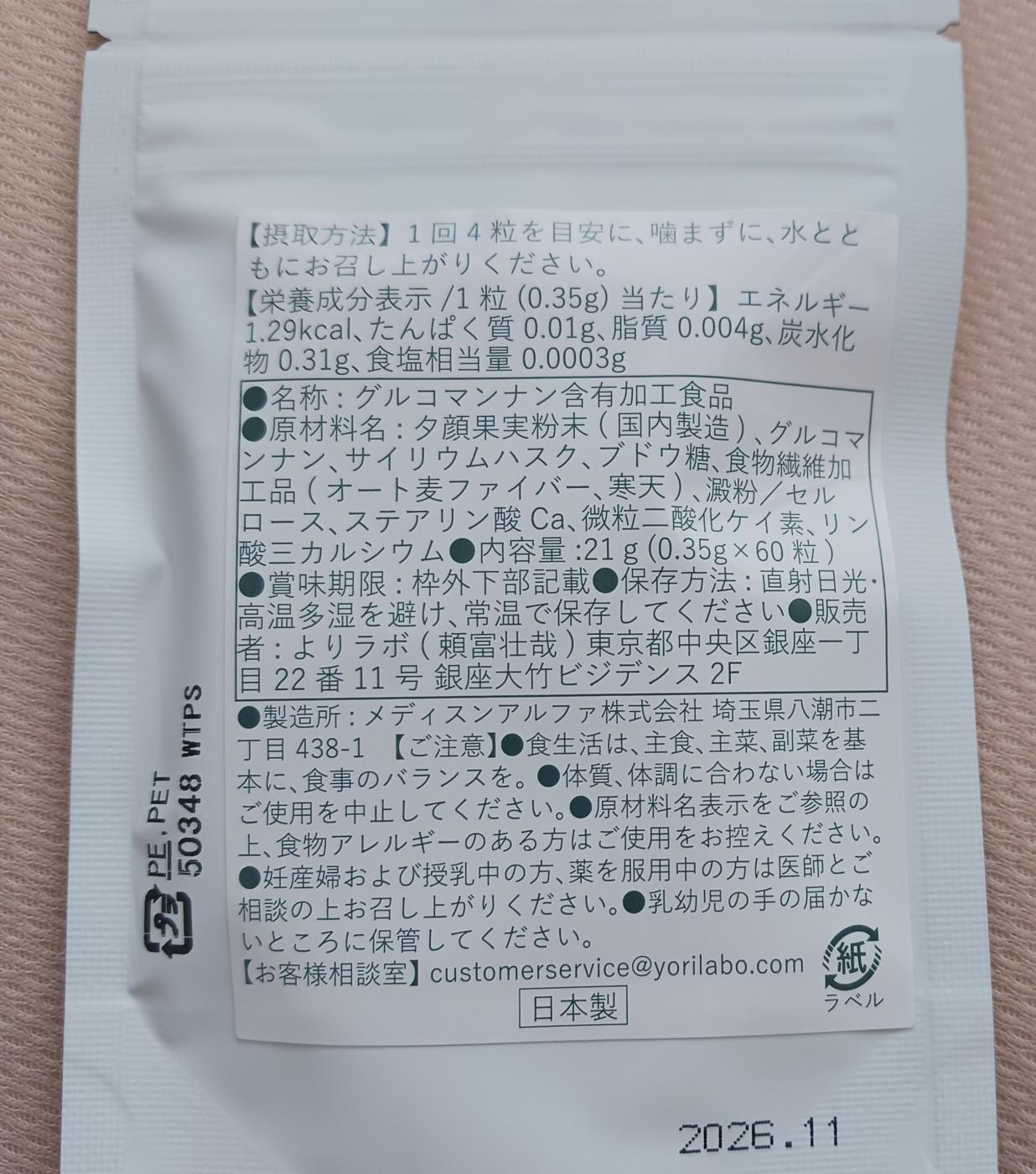 「ポケットに入る、気軽な一食」というコンセプトの通り、手軽に取り入れやすい点が印象的でした。1回4粒を目安に水と一緒に飲むだけなので、忙しい朝や時間がないときでもサッと使えるのが便利です。食事の準備や後片付けの手間がかからず、慌ただしい日でも取り入れやすいと感じました。外出前や仕事の合間など、さまざまなシーンで活躍してくれます。