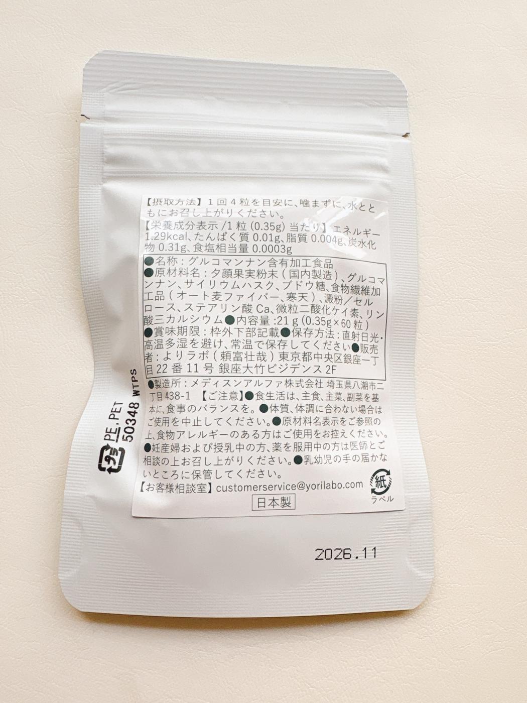 水分に反応して膨張する成分が配合されていて、忙しくゆっくり食事が取れない日や、お腹を満たすためにとりあえずご飯を買わなきゃ...と言ったようなシーンの際にたった4粒で空腹を軽減することができるサプリメントのようです👀