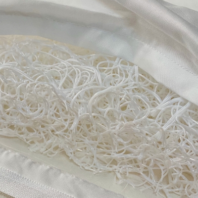 洗えるクッション材。繊維が三次元状に複雑に絡み合っていて