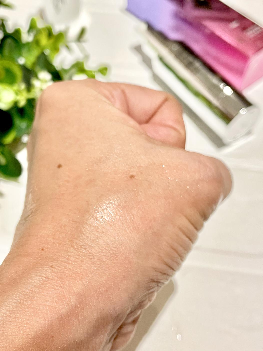 いざ体験!お肌に伸ばしている最中から、最初に塗った部分がみるみるツヤツヤになっていく!!!まるで陶器に抜群の光量を当てた時みたいに光ってるじゃないの!わたしのお肌!もはやお肌から光を発しているかのよう。