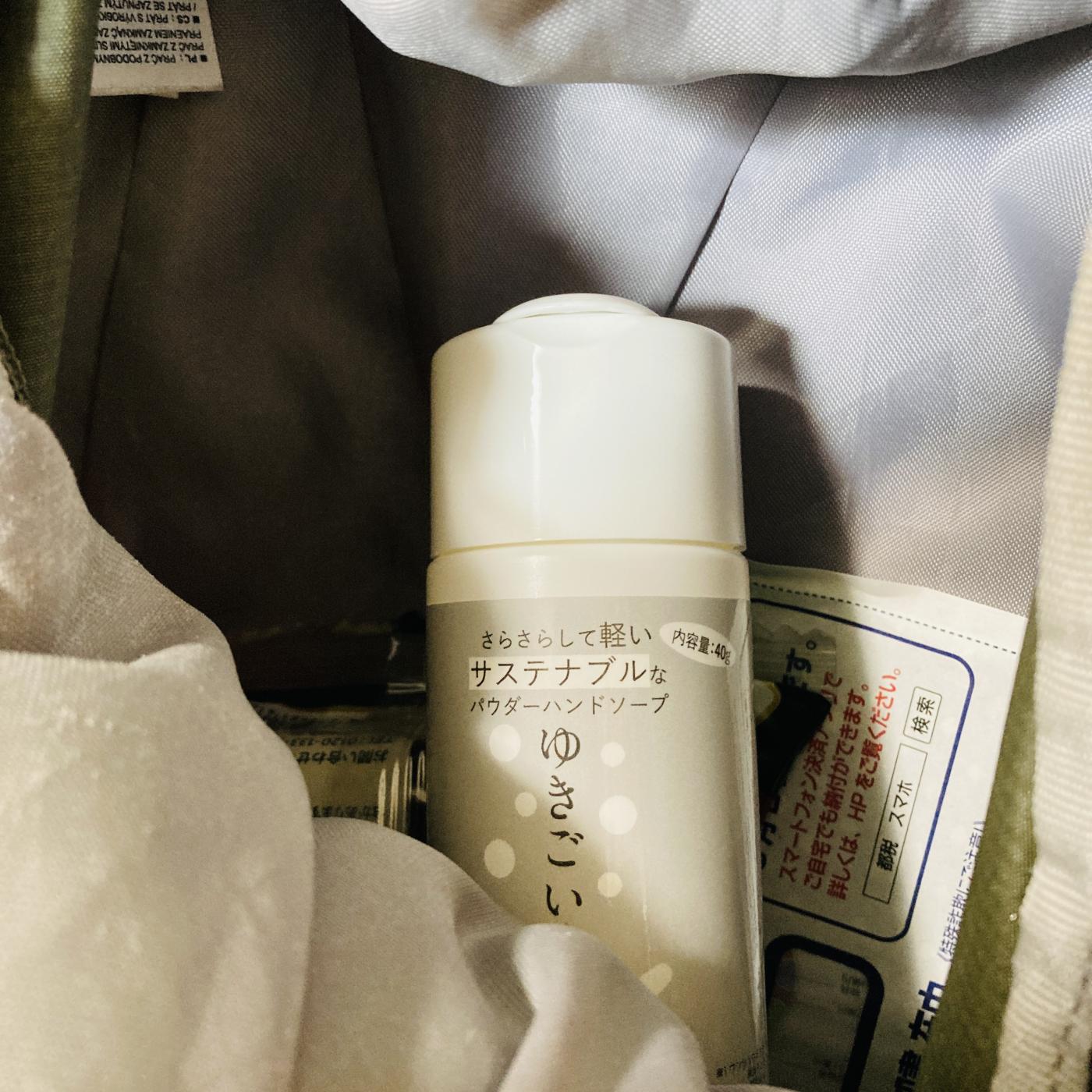 こちらはなんと珍しい、パウダー状のハンドソープですよ。ハンドソープって泡とか液体ですがこれは粉なんですよ。ボトルのはコンパクトで持ちやすいですね。パウダーだから軽いのがポイントで、持ち歩きやすいですね。蓋もワンタッチであきやすいのが素敵ですね。キャップが行方不明にならないシステムなのでこれもうれしいね。