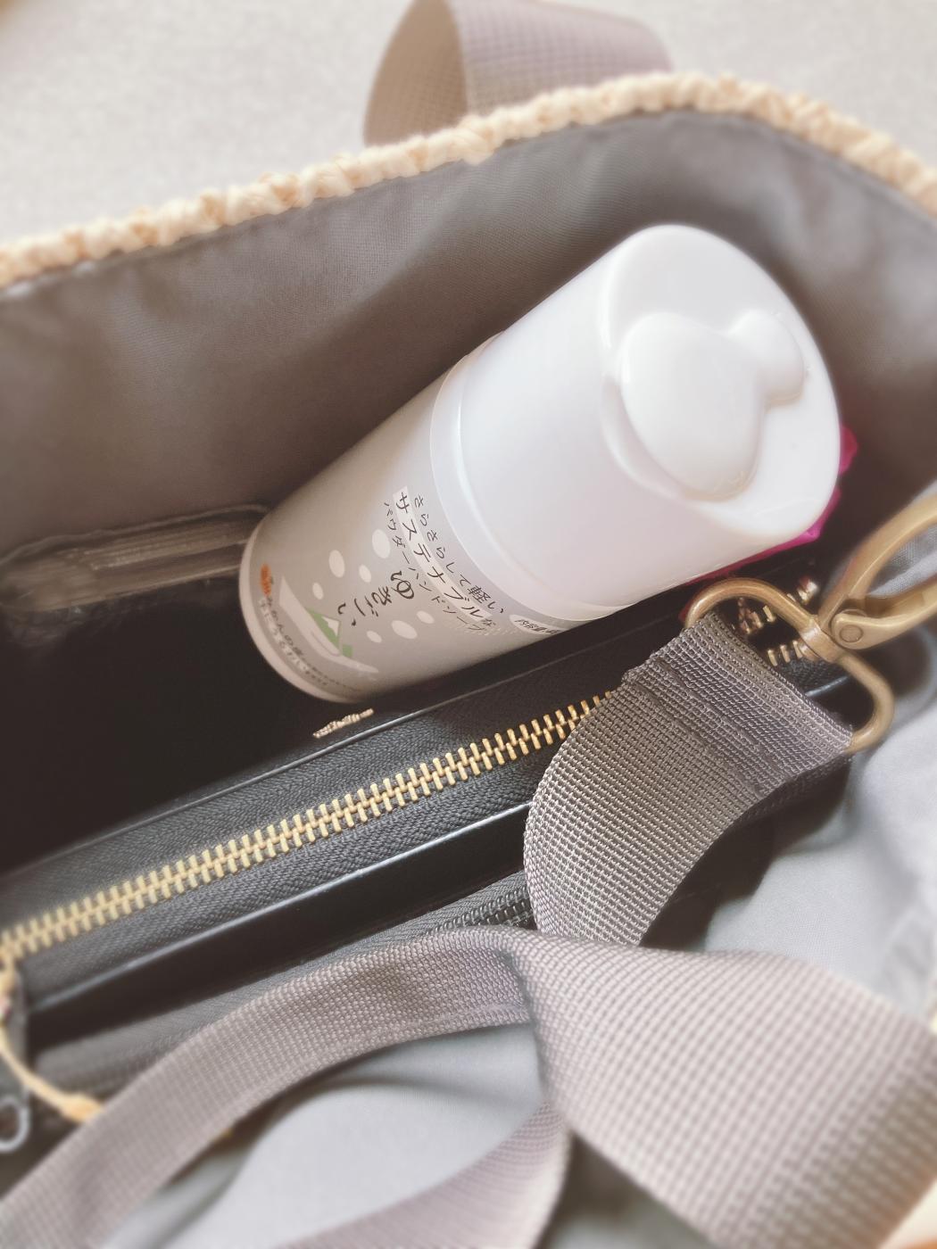 バッグにサッと入れて持ち運び、お出かけ先や職場でも手を洗うたび使っています。