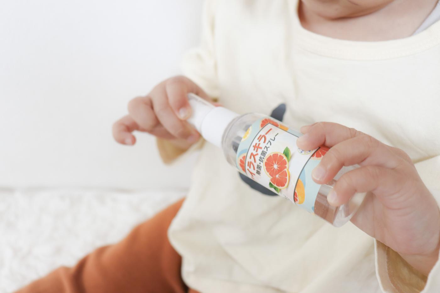 小さな子どももいる家でも安心なのでシュシュッと色んなところを除菌してます。