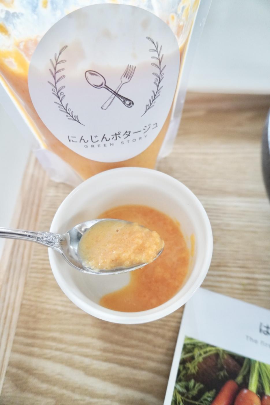 綺麗に梱包され、冷凍された状態で届きました。早速600wで2分30秒、電子レンジで加熱。加熱後は冷蔵庫で1度冷ましてから、冷静スープで頂きました!蓋を開けてこのままスープが飲めるので、洗い物も少なくてとっても便利です。会社や外出先にも気軽に持ち運べるなと感じました。今回は、にんじんポタージュを頂きましたが、にんじん本来の甘みと果肉が麹とマッチして、まろやかな口当たりで美味しかったです。2歳になる娘にも少し上げてみましたが、甘いにんじんの味が美味しかったのか美味しそうに食べていました。普段にんじんは中々食べてくれないので感激…。腸内環境を整えてくれて、見た目もオシャレなスープ。老若男女喜ばれると思うので、プレゼントにもおすすめの商品だと思います。今度は違う味も是非食べてみたくなりました。