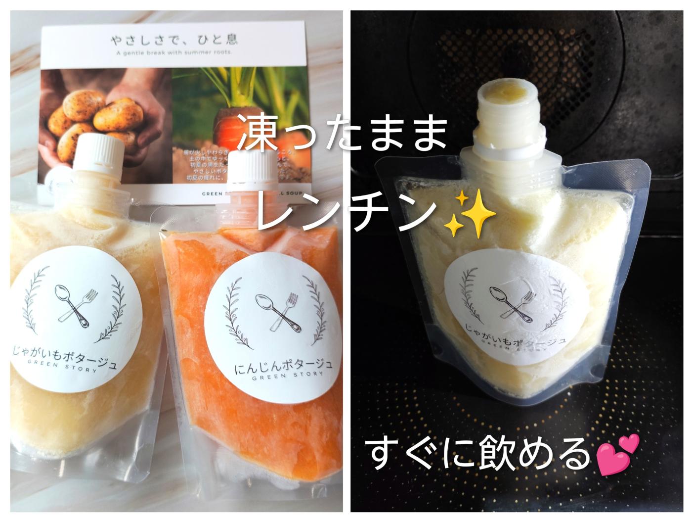 そんな素敵なスープは、カチカチの冷凍で届いたのですが…レンジでたった2分半あたためるだけで食べ頃になることに食べる前から感動🥹✨