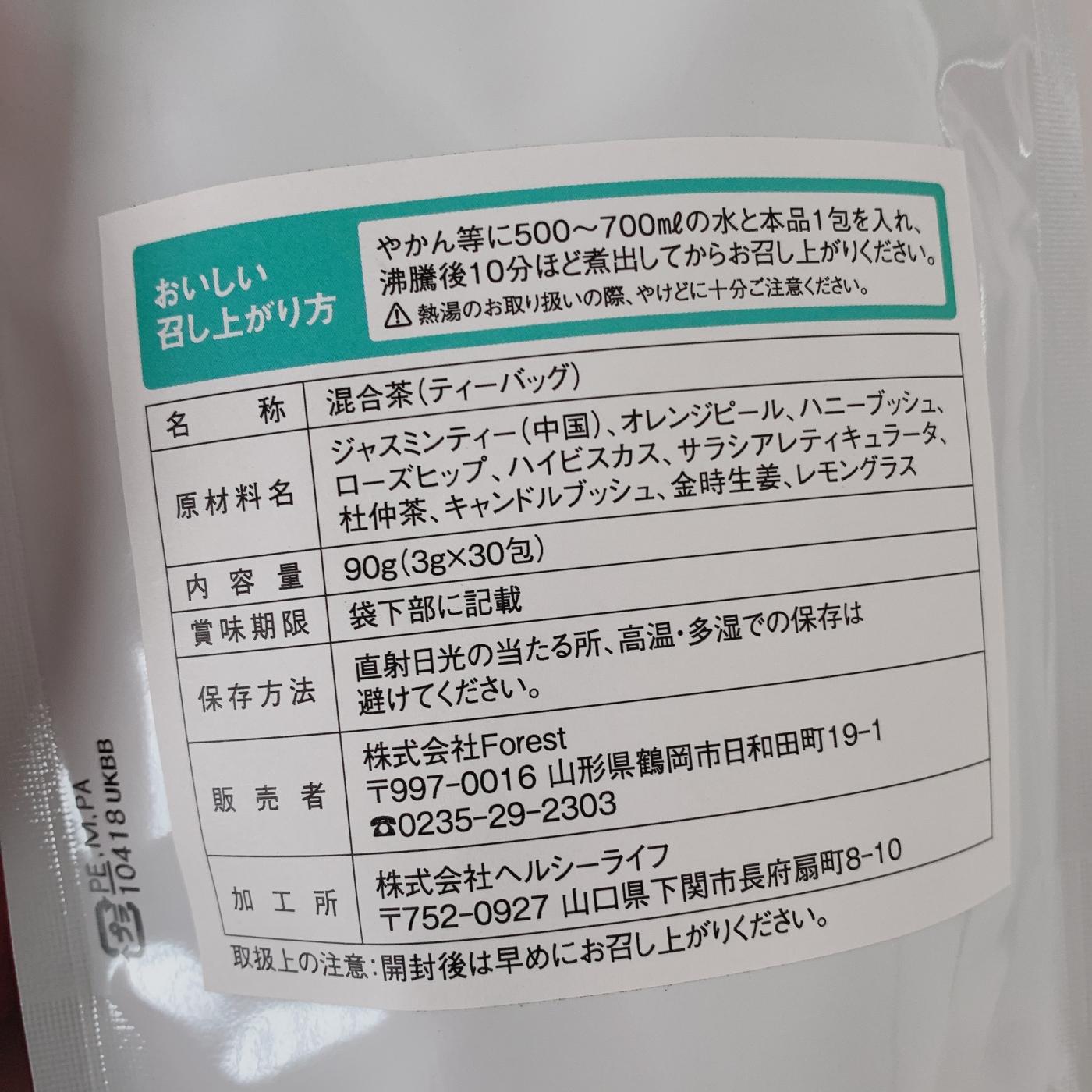 ジャスミンをベースに ・オレンジピール ・ハニーブッシュ ・ローズヒップ ・ハイビスカス ・...