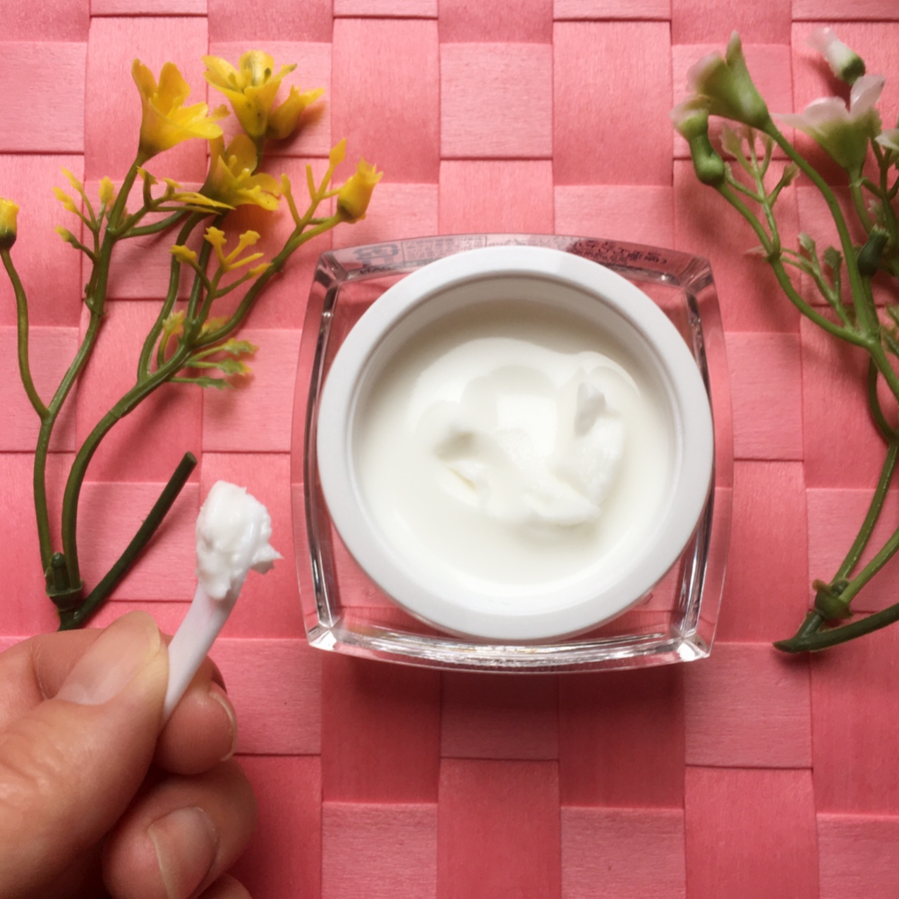 白い固めのクリームでスパチュラつき&内蓋あり、重めのテクスチャーですが、少量でも伸びがよく、お肌がしっとり潤い、ふっくらとハリのあるお肌に導いてくれます☺️✨✨