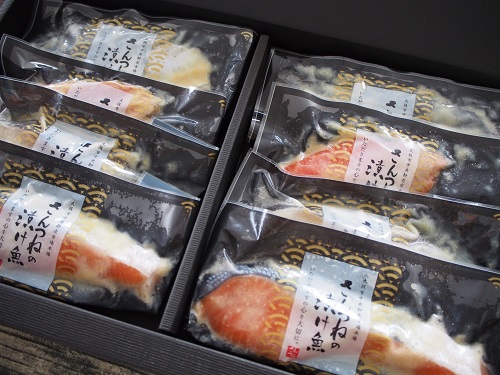 ぎんだら・さけ・さわら・きんめ鯛の4種類が各2コずつの計8コ入っています。