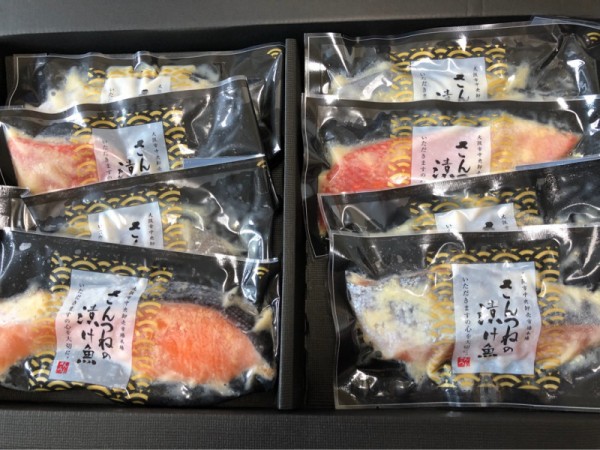 さわら、ぎんだら、きんめ鯛、さけと4種類のお味が楽しめるセットを